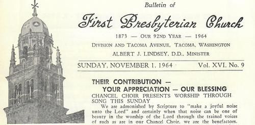Read the FPC worship bulletin from Nov. 1, 1964.