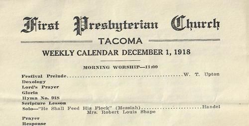 Explore the FPC worship bulletin on December 1, 1918.