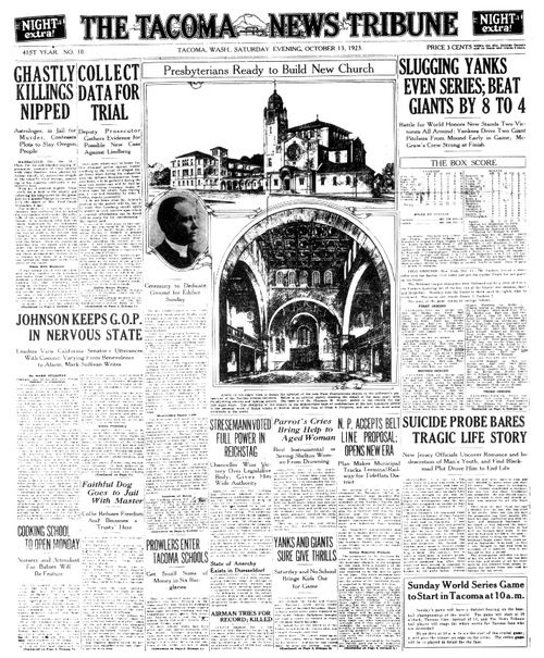 In connection with early plans for the church, a member of the Building Committee, Mrs. George L. Dickason, suggested that the pastor’s study be placed in the Tower. Her thought was that the view from the Tower would be inspiring to the Pastor.