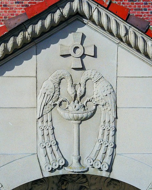 Just below the dome of the Tower there is a balustrade. In the center of each side of the balustrade there is a niche with a model of one of the four evangelists–Matthew, Mark, Luke, John. The Boston architect originally thought that these items would have to be made in the east, but instead the work was done here by local artisans. Cram and Ferguson, the architects, sent a catalogue of ecclesiastical inspirations by the A. DaPrato Co. of Boston and models were made from illustrations in that book. Upon completion of each model a picture was taken of it and sent east for their approval. In a letter dates October 17, 1924, the architects wrote, “We wish to congratulate the modeler on the excellence of his work so far. We think it has been extremely satisfying.”